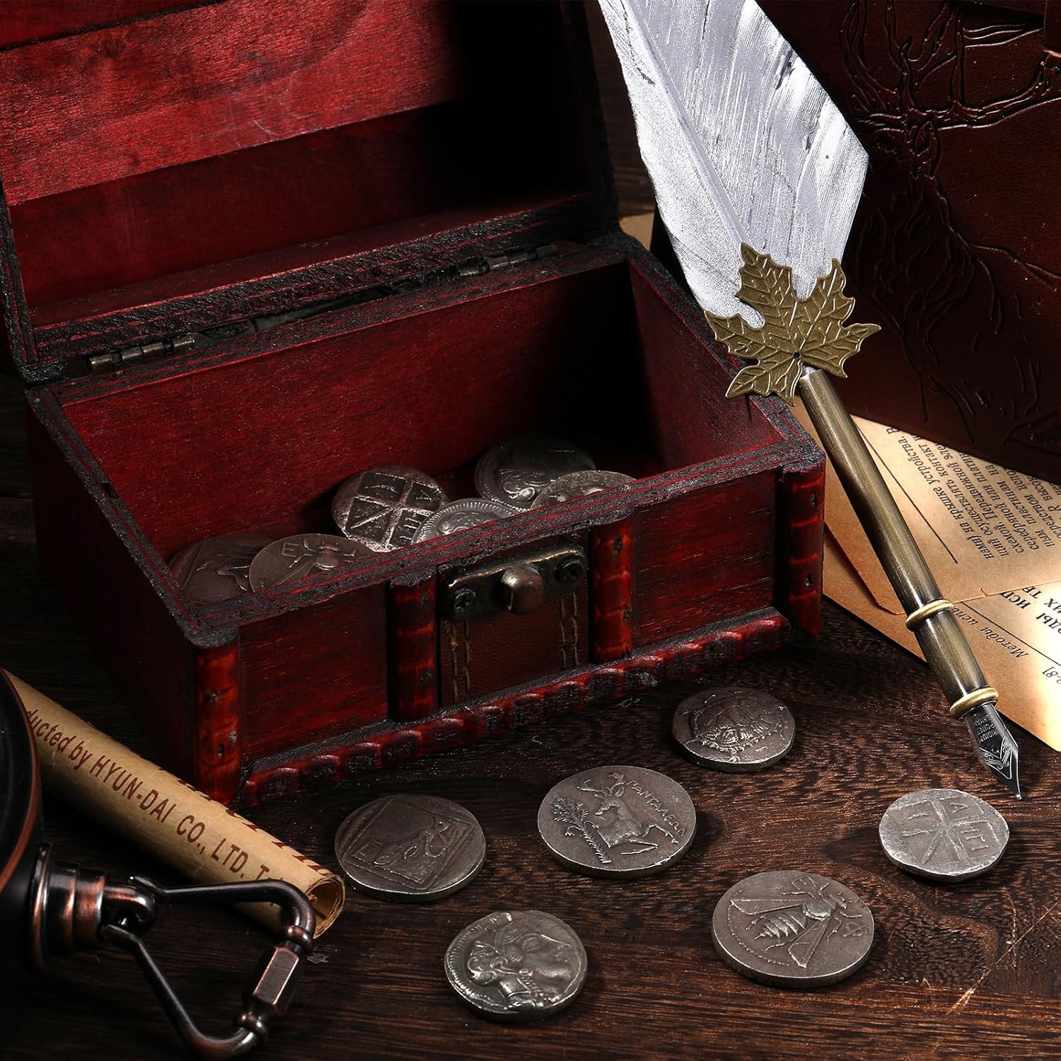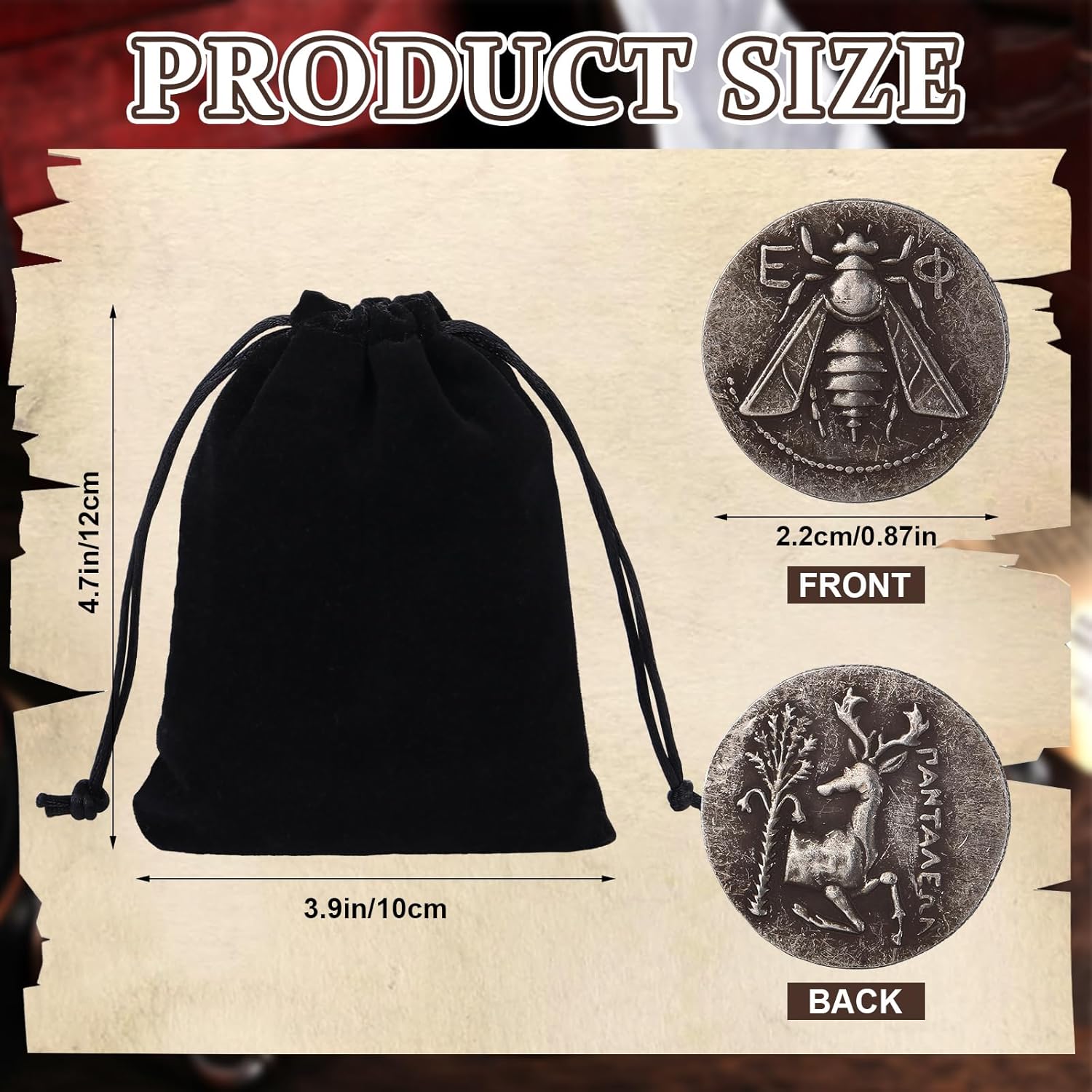 Features: Convenient Storage: Every set of coins also comes with a black velvet bag measuring 3.94 x 4.72'' / 10 x 12 cm. This complementary accessory is not only stylish but also nicely sized to keep your coins safe, making it easy to store and transport your set anywhere you wish to take your gaming or coin collecting. Specifications: Material: silver plated brass Size: Coin: 0.87'' / 2.2 cm (diameter) Bag: 3.94 x 4.72'' / 10 x 12 cm Package includes: 12 x ancient greek coins Notes: Manual measurement, please allow slight errors on size. The color may exist a slight difference due to different screen displays.