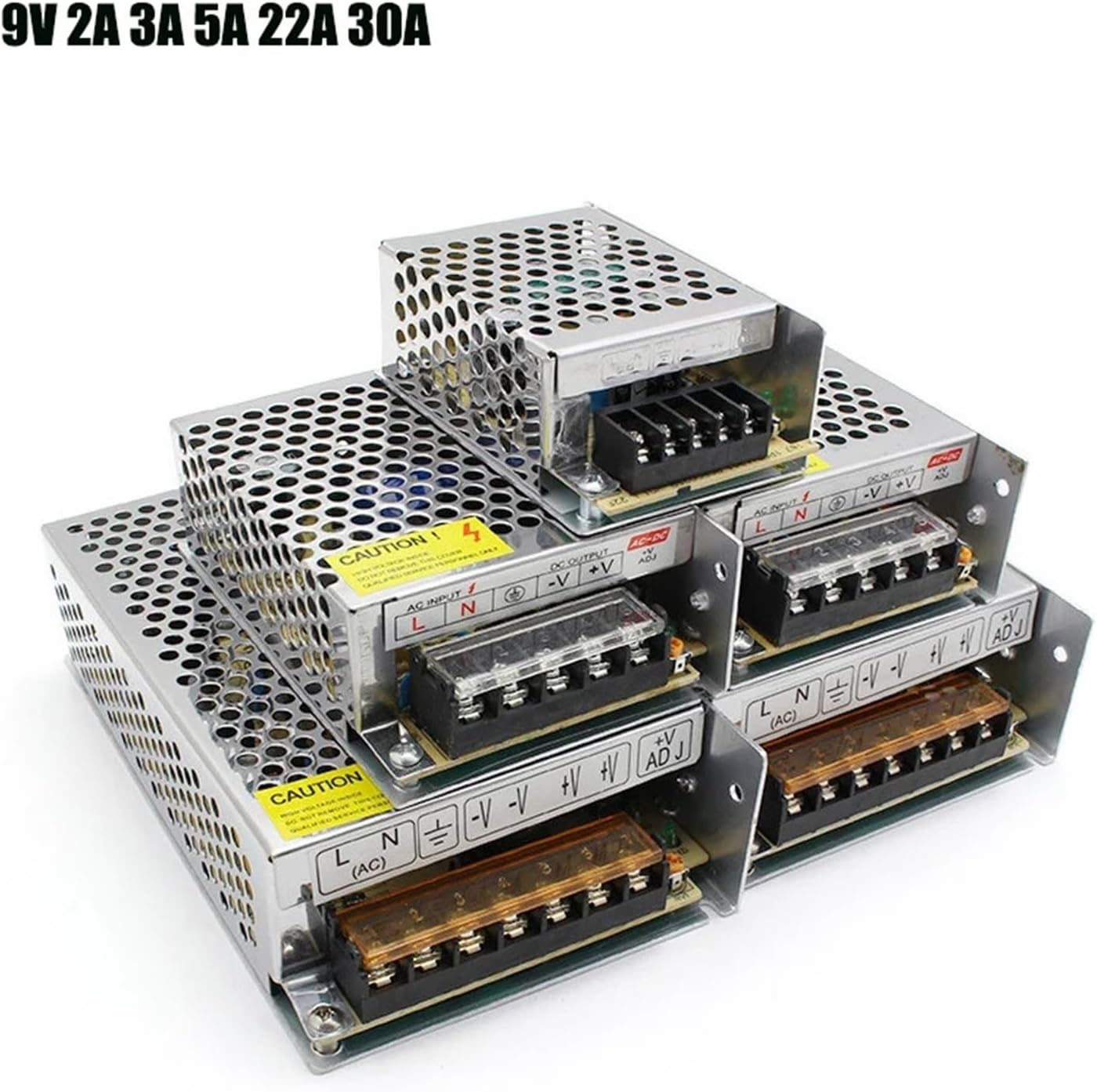 Low Voltage TransformersTransformer 9V LED Lighting Transformer Power Supply 9V AC DC Source High Voltage Regulator LED Driver 2A 3A 5A 22A 30Adescribe:Input voltage: AC110V/220V±15%Output voltage: DC 9VOutput current: 2A 3A 5A 22A 30AShell material: Metal shellSafety compliance: FCC/CECost-effective, industry-standard reliabilityBuilt-in overvoltage, overcurrent, and short circuit protectionWorking temperature: 0~40℃Storage temperature: -20~60℃Ambient humidity: 0~95%, no condensationL, N: AC power inputGND: DC power output "-"V: DC power output "+"+V/ADJ: Adjust output voltage