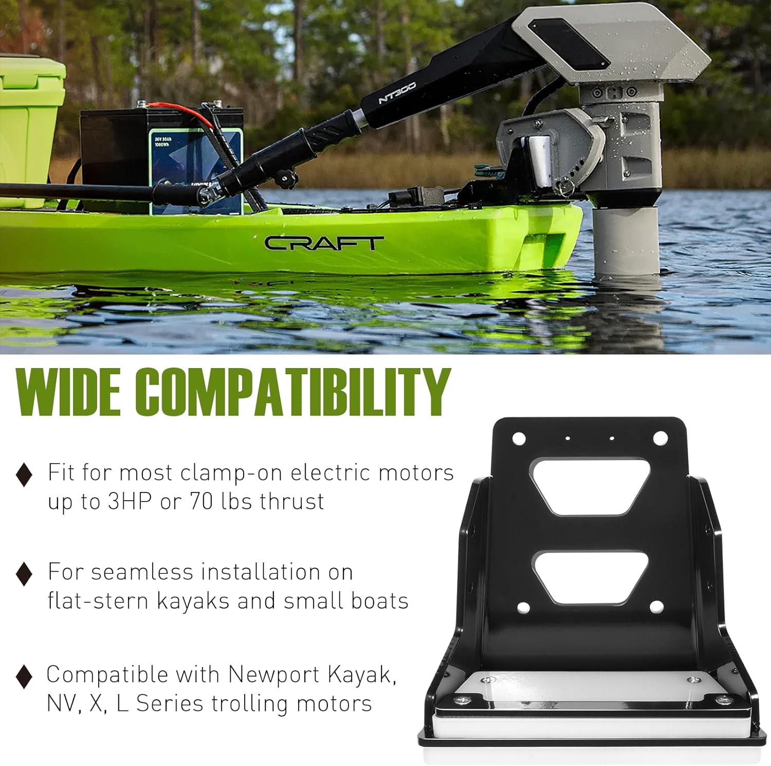Trolling Motor Transom Motor Mount for Kayaks, 6mm Thick Full-cast Aluminum Body, for Most Clamp-on Electric Trolling Motors up to 3HP or 70 Lbs Thrust