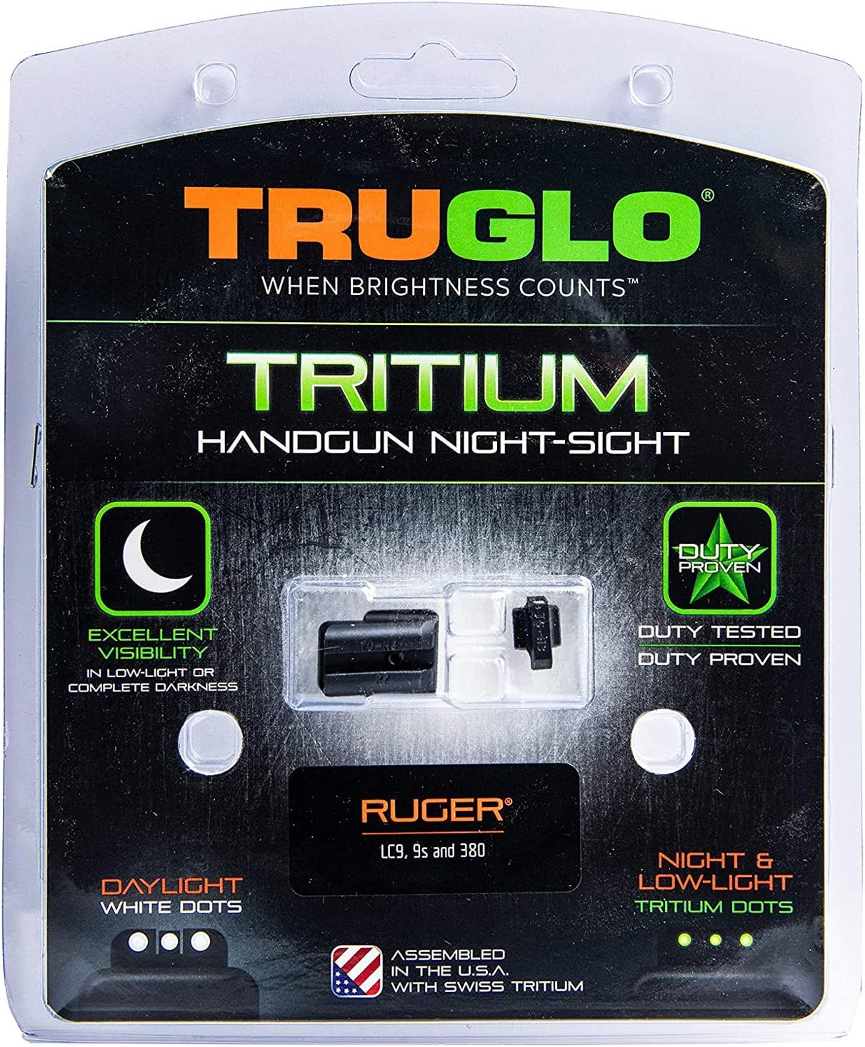 TRUGLO TRITIUM HANDGUN SIGHT: When the lights go out, your sidearm doesn't need to be left in the dark. The Tritium night sight transitions from standard white dot sight during the daylight, to a glowing green dot in the dark. Tritium does not need batteries and does not need to be charged with light - it simply glows! This TruGlo High-Visible Night Sight is compatible with Ruger Models. MAIN FEATURES: - Night Sight compatible with Ruger Handguns; - Excellent visibility in low-light or complete darkness; - Daylight white dot and night Tritium dot; - Glows in the dark - no batteries, light exposure required; - FORTRESS FINISH nitride protective coating; - Smooth, snag-resistant design; - Durable CNC Steel; ABOUT TRUGLO: TRUGLO is the leading manufacturer of fiber-optic sights, tritium handgun sights, and shooting accessories for bows, crossbows, and handguns. We're a Texas company. Inherently, that means we like our guns, and slinging lead a long way. From target archery and crossbow hunting to carry pistols and tactical competition, TruGlo has accessories to improve your gear. Regardless of your outdoor sporting interest, we have gear that's optimized for your style and budget.