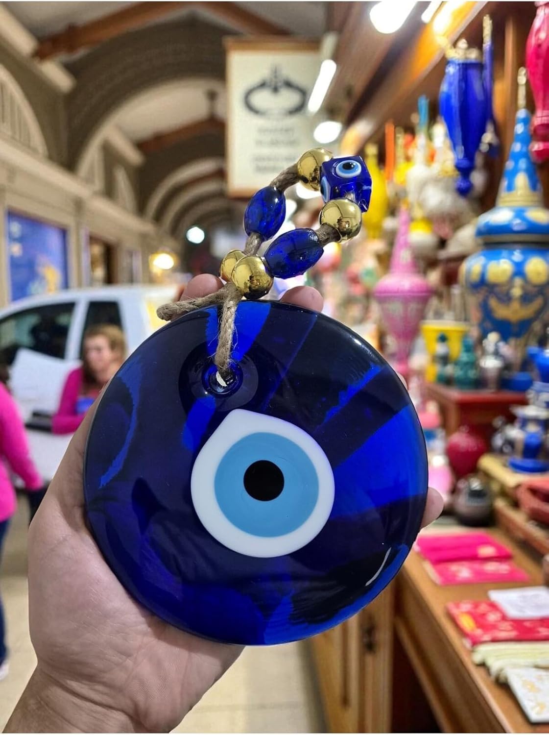 Add a touch of Turkish tradition and protection to your home with this beautifully handcrafted Nazar Boncugu wall hanging. Made from high-quality glass in the iconic deep blue color, this evil eye amulet measures 13x30 cm (5.1x11.8 inch) and features intricate traditional embellishments. Each piece is carefully handmade by skilled Turkish artisans, making every amulet unique. The Nazar Boncugu is deeply rooted in Turkish culture, believed to ward off negative energy and protect the home and its inhabitants. This versatile decoration can be hung on doors, walls, or windows, making it perfect for entryways, living spaces, or any area needing a touch of cultural charm. The piece comes ready to hang and makes a thoughtful housewarming, wedding, or special occasion gift. The striking blue glass catches light beautifully, adding both protective symbolism and decorative appeal to your space.