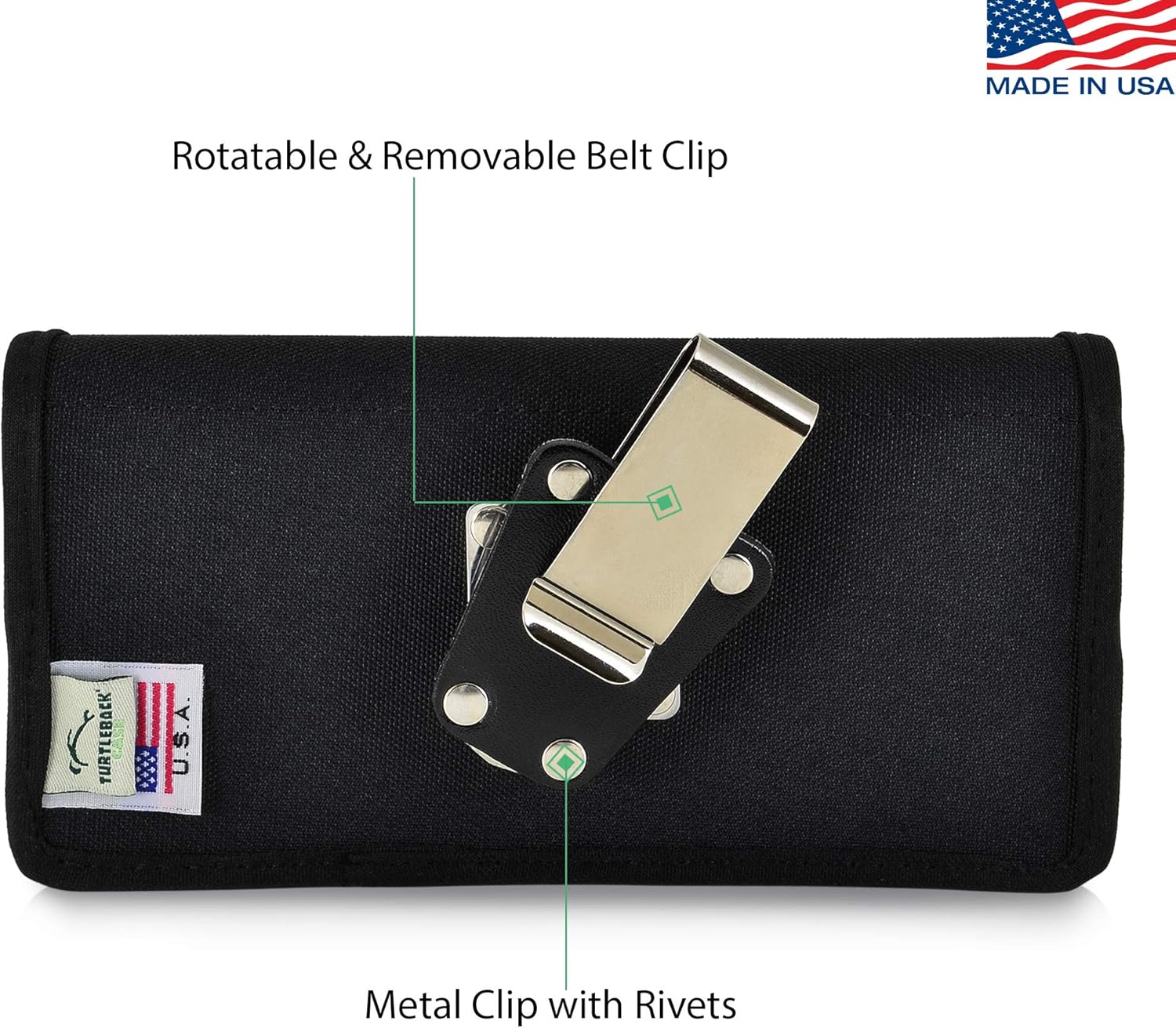 If you're an owner of a Samsung Note 9 and Note 8, you can keep your gadget safe and secure with the Turtleback Nylon Holster Case. This holster is systematically engineered to hold the Samsung Note 9 and Note 8 phone equipped with a slim case (but will fit naked phones with room to spare!) , the Turtleback Nylon Holster Case has interior dimensions of 6.62 X 3.26 X 0.46 in Aside from its custom fitting, this innovative, tough holster also boasts numerous benefits, making it perfect for this mobile phone. It is made with nylon that is reinforced by polymers to make the case dirt and water resistant. This water- and scratch-resistant nylon is bonded to a polymer backing. The polymer backing serves a purpose, as it makes the case more durable. This case exudes a minimalist, subtle beauty that meshes well with most bags and apparel, and its interior is lined with soft felt fabric to protect the phone's screen. This holster case features an ergonomic design, with premium neodymium magnets that ensure a secure closure. The magnets are hidden inside the case's flap and lock quickly and efficiently every time you fold the case. This closure style guarantees quick access to your phone, meaning that it will always be ready to use and accessible at your hips. Also, the case has a bottom cut-out that allows the phone to be pulled more conveniently from the holster. A removable and rotatable metal belt clip serves as the holster's attachment device. It can be attached and removed easily, just insert the clip upside down on the D-ring that is located at the back of the case and lock it into place. The rotating belt clip can be swiveled to your liking and convenience. It is designed to clip tightly to belts for security, so this case will stick to your hip even when walking. All of our cases are designed and Assembled in USA and we provide a 90 Day Satisfaction Guarantee!