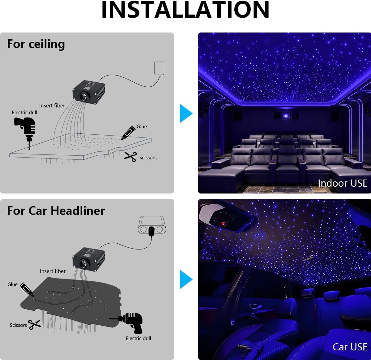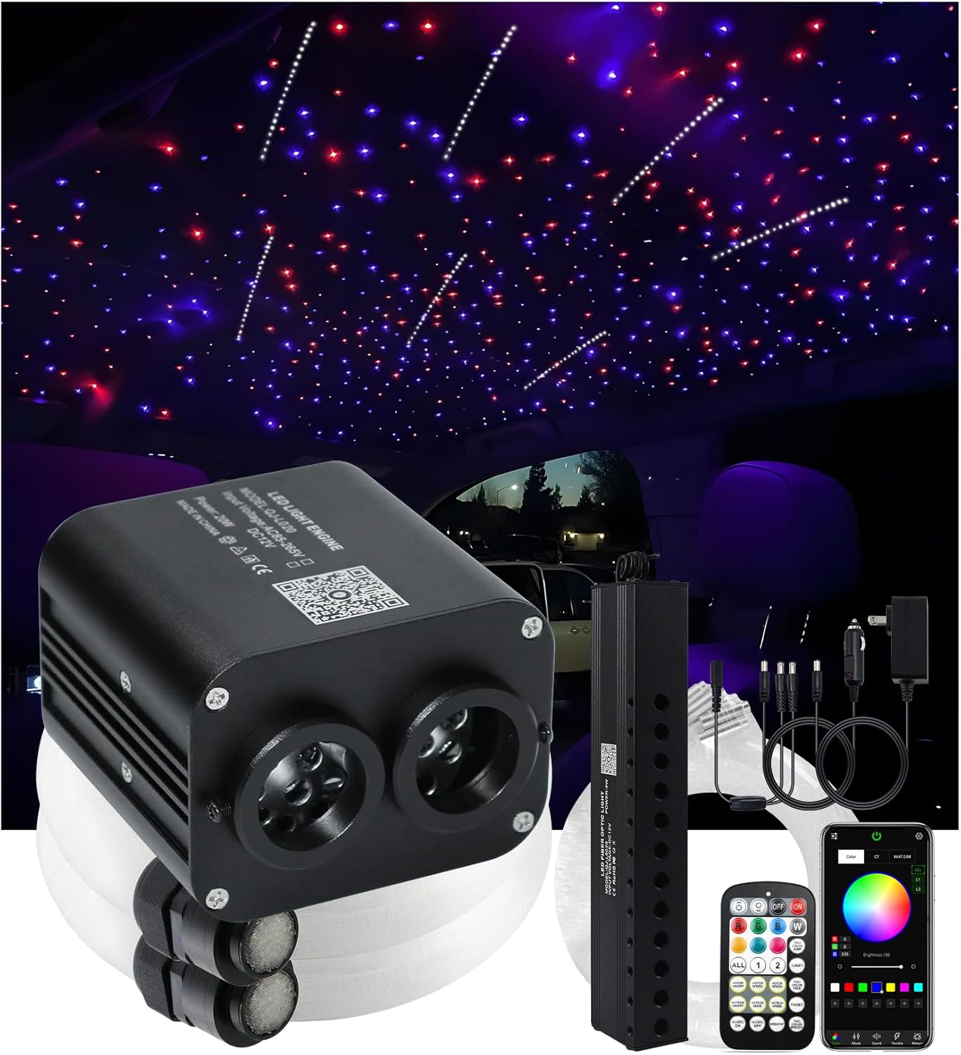 Upgraded 16-20W Smallest Size RGBW Twinkle + Music Activated + Bluetooth APP Light Kit——Great Headliner for Cars/Home Star Ceiling Light Kits