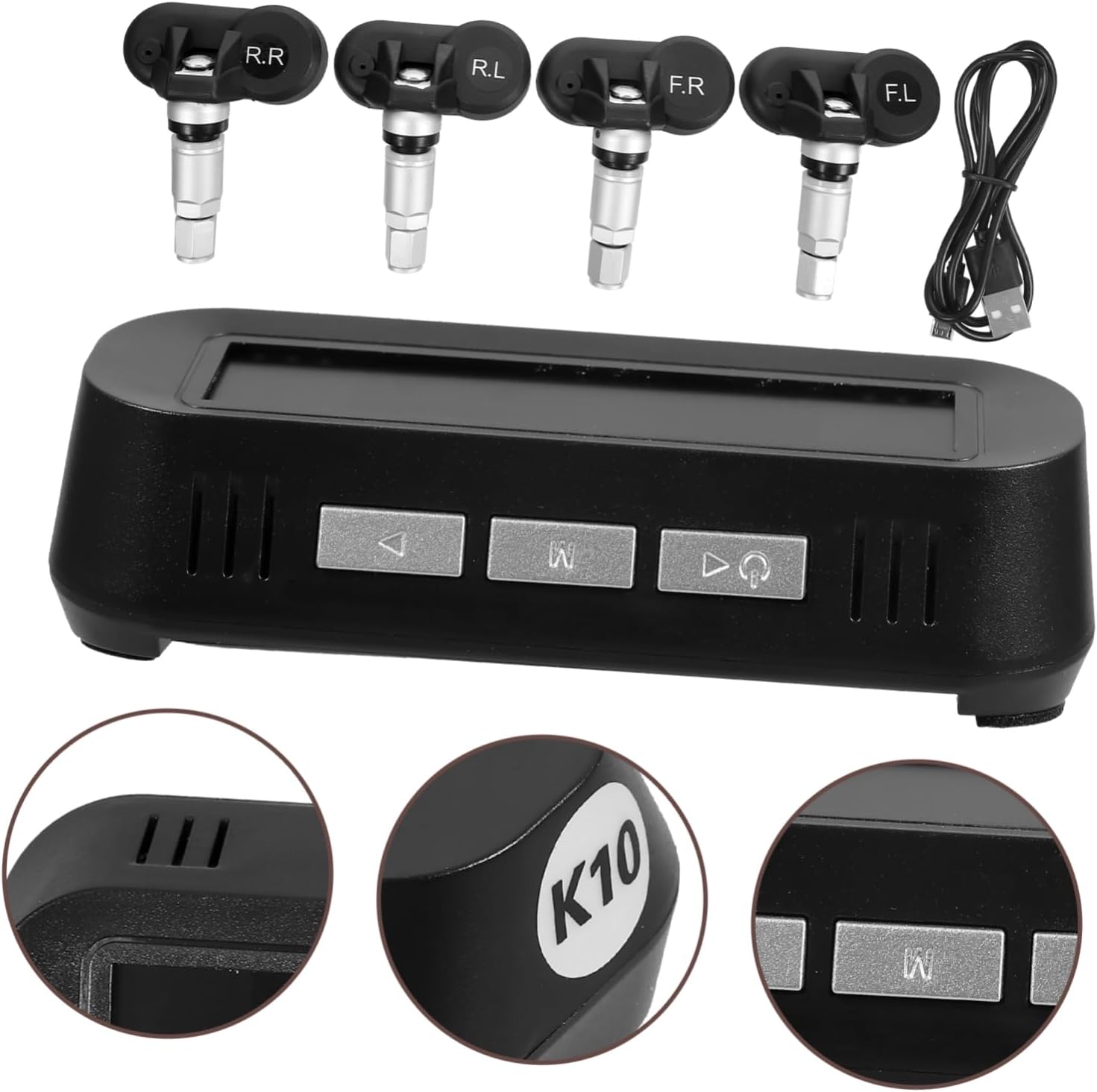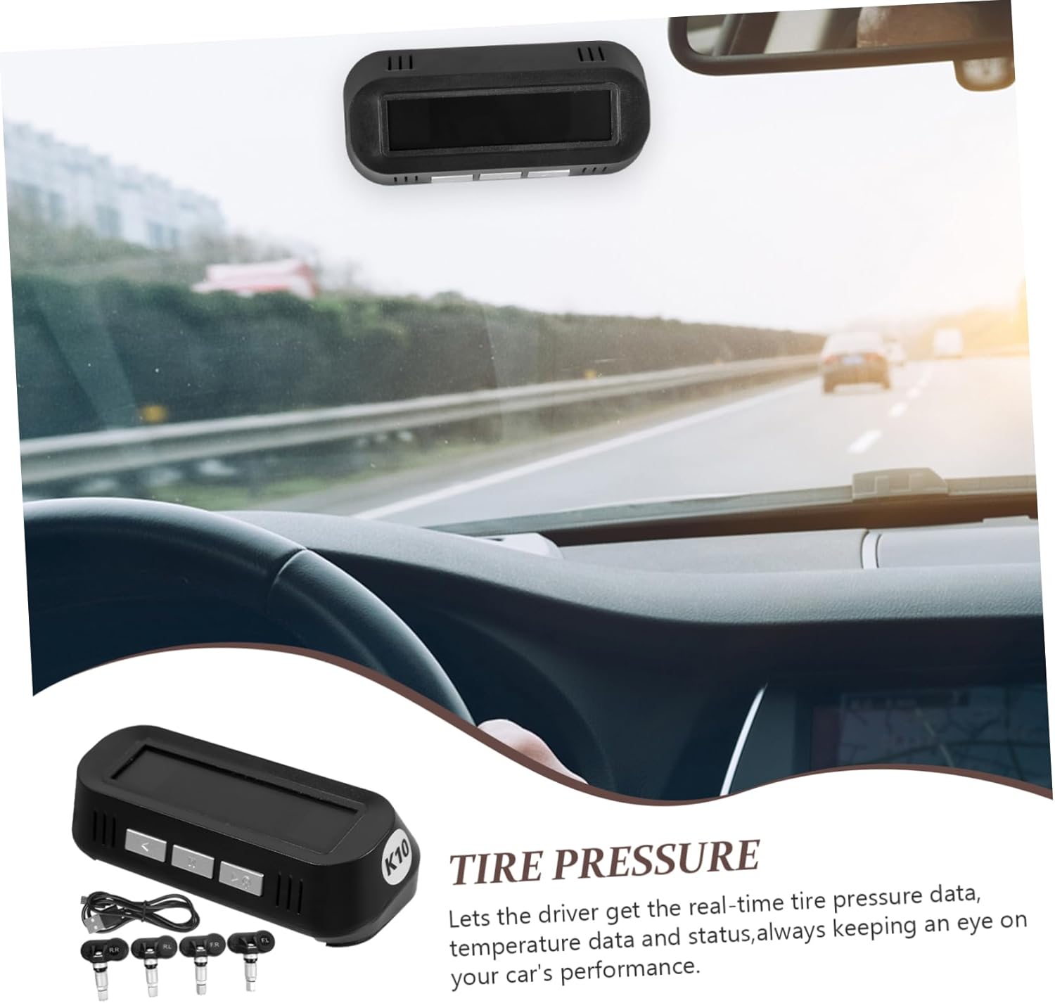 Package List 1 x Tire Pressure Detector Features - Real Time: Support shows four wheels' tire pressure and temperature simultaneously,high/low tire pressure alarm,high temperature alarm and air leakage condition alarm tire pressure monitor system. - Material:ABS tire pressure monitor - Color: as shown tire pressure monitoring system solar - Accurate: The real-time tire pressure data,visual and audible warning for abnormal pressure and temperature,very convenient and practical. -Test pressure range : 4.3 under the Bar - Size: 16x13x6cm - Lets the driver get the real-time tire pressure data,temperature data and status,always keeping an eye on your car's performance pressure monitoring system. - High-definition color screen display, supports solar energy charging tire pressure monitoring. - Solar energy powered,which has the characteristics of green,low carbon and renewable advantages,enabling you to charge the device faster and greener.Goods Informationtire pressure monitoring system solar You’re also warned when the battery of a tire sensor is low.tire pressure monitor Know the real time air pressure and temperature for tires on the screen.tire pressure monitoring Gives you early warning of air leaks and other abnormal tire situations so corrective action can be taken and tire life can be extended. pressure monitoring system When the air pressure or temperature of any tire goes outside the predetermined range,both the monitor display and an audible alarm warn you