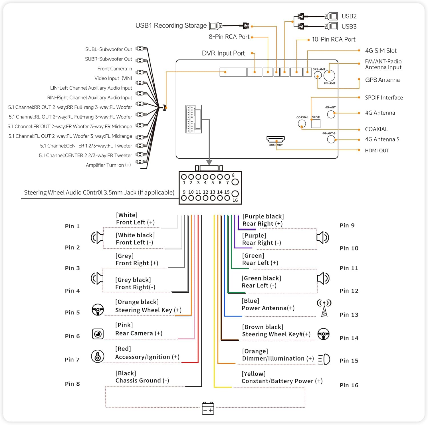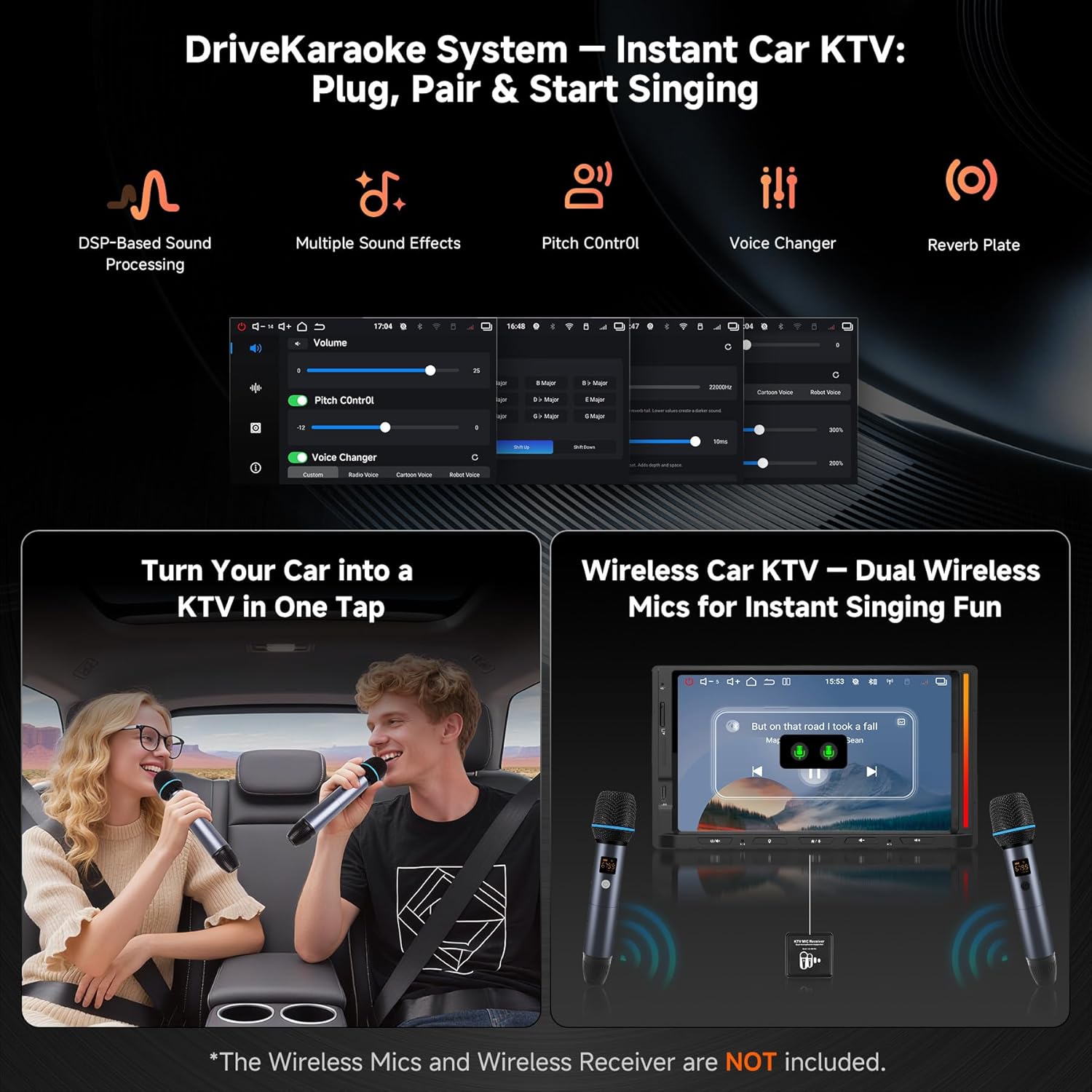 | Other Special Features of the Product | Android, 6G RAM and 128G ROM, Karaoke in-Car Mode-Wireless Microphone Kit Needed, RCA 4V Pre-out, Subwoofer L/R, 32-Bands EQ, Time Alignment, Supports 4 Cameras Simultaneous Recording, Wireless CarPlay and Android Auto, 4G/Wi-Fi/USB Tethering |