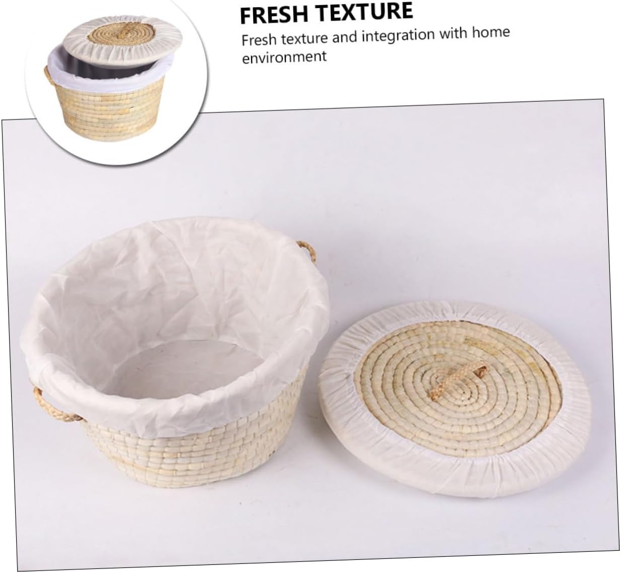 Package Include 1 x knit storage basket Characteristics -Size: About 30.00X30.00X16.00cm/11.79X11.79X6.29inch -Color: Beige -Product Info:Baking bread basket -Material: Straw corn husk -Used widely, it can be used at home, bakery, kitchen kitchen knit basket -Made of natural material, made by knit workmanship, very and firm. -With handles, convenient for moving, will not hurt you hands even carrying items of high weight steamed bun storage basket. -Also suitable for storing eggs, fruits, potatoes, breads, etc. Adds a natural and relaxing feeling to the busy city life domestic eggs storage basket. -Woven appearance will give your home, kitchen or sheltered balcony a feeling of walking into nature practical woven basket.Goods Descriptionkitchen knit storage basket This is a knit basket which is made of straw plaited article, making it and practical.corn husk storage basket Large capacity makes it able to storage more foods, fruits, etc, making your life more convenient