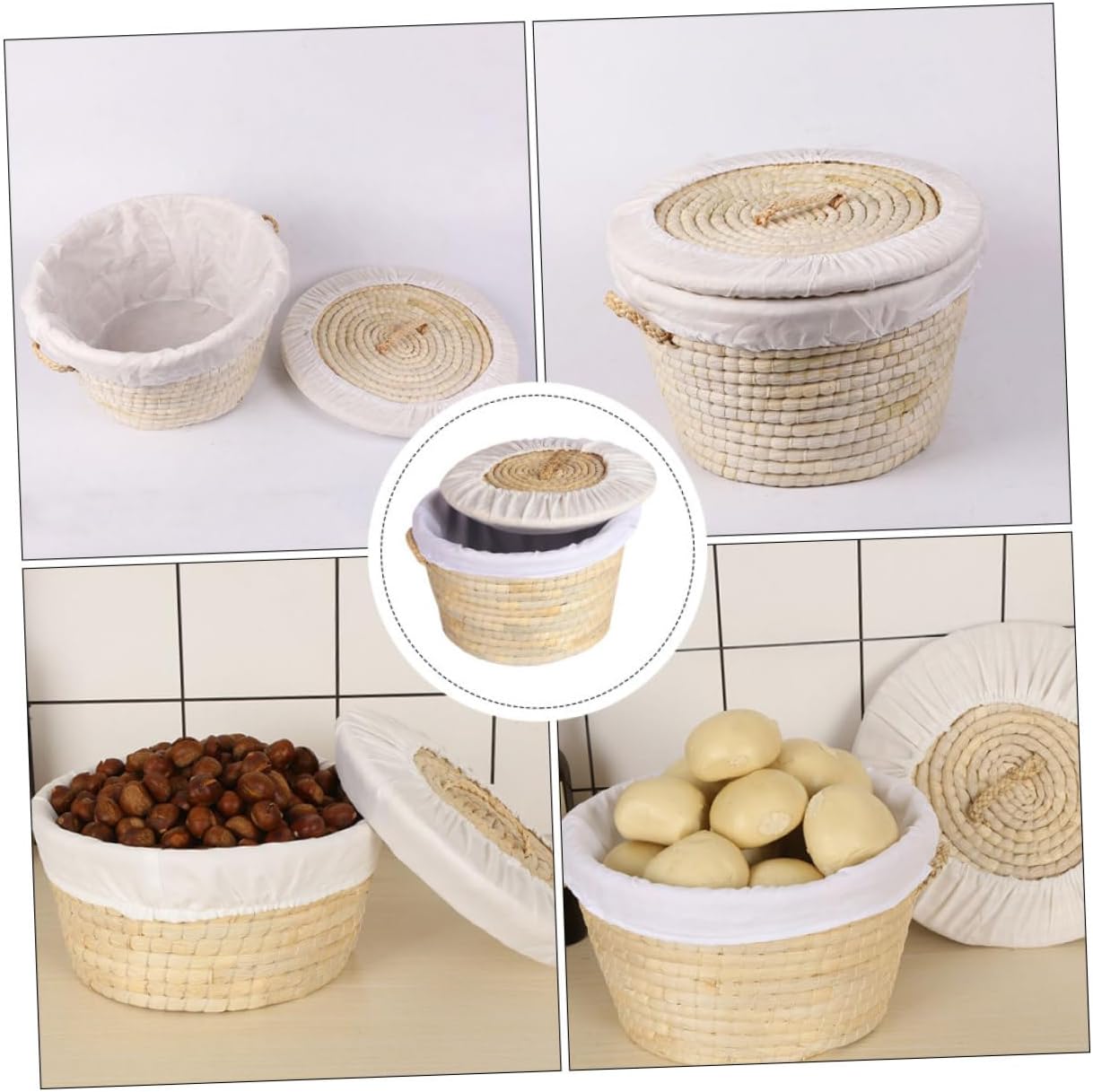 Veemoon Woven Food Basket with Lid 30cm round Straw Bread and Egg Storage Basket for 8-10 Buns Home Dining and Baking Organizer