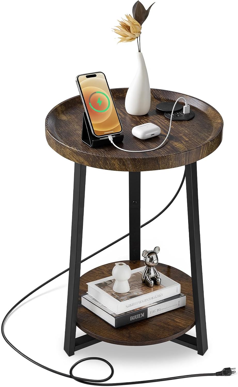 | Item Type Name | 2-Tier Square Side Table with Open Storage Shelves, Modern Nightstand Bedside Desk with X-Design Metal Frame, Wood Sofa Coffee Desk for Living Room, Bedroom, Office, Dorm, Brown |