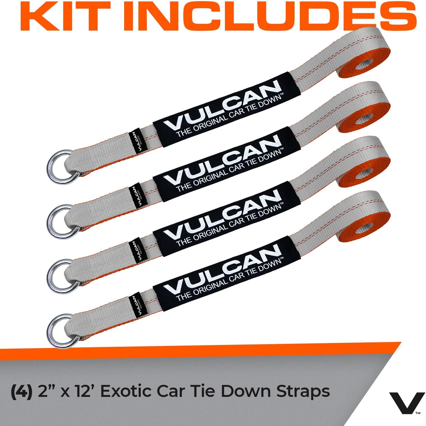 | Included Components | VULCAN Exotic Car Rim Tie Down Set - 2 Inch x 144 Inch - 4 Straps - Silver Series - 3,300 Pound Safe Working Load |