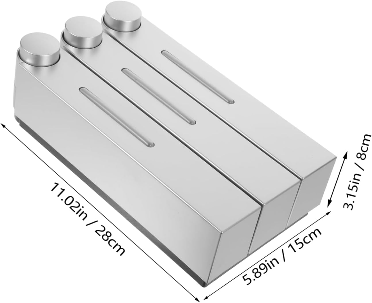 Package Include 1 x shower dispenser Features -Material:ABS,PVC Wall Mount Shower Dispenser - Color: Silver Shower Gel Container - Size: 28.00X15.00X8.00cm/11.00X5.89X3.14in Shower Soap Dispenser - The button is easy to use, not easily get jammed. Simply press will get the amount of body wash you need Soap Dispenser. - Crafted with , the shampoo dispenser ensures durability and resistance to damage Shower Dispenser. - The convenient three-chamber design allows for easy dispensing of three different products at the same time Wall Mounted Shower Pump Dispenser. - The shower dispenser is refillable. Open the panel and you will see a bottle. All you need to do is fill the bottle with the products and put it back Body Wash Dispenser. - Adopting a space-saving design, the shower dispenser will help you better organize your bathroom essentials Shower Shampoo Dispenser 3 Chamber.Goods DescriptionShower Shampoo Dispenser 3 Chamber The outlet is designed to prevent any leakage.Soap Organizer With this dispenser, your bathroom will look tidy and organized.Body Wash Dispenser For Shower Made of plastic material, it is built to last.Shampoo Holder The button is easy to use, making shampoo or other refills smoothly run out.Wall Mount Shower Dispenser The 3-in-1 shower dispenser offers a for better bathroom organization