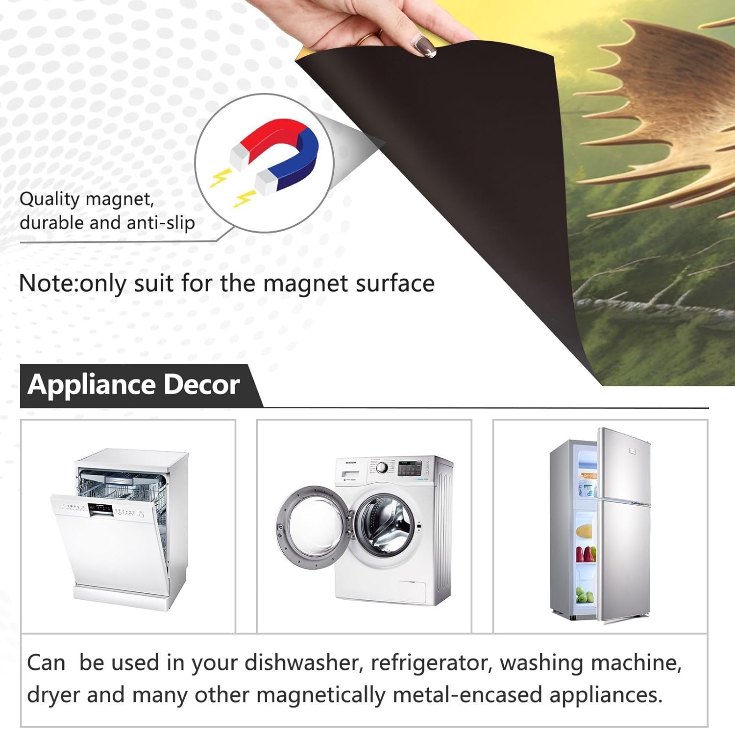 Specification:Material: PVC Surface + Magnetic CompositeDimensions: 23×26×0.02 inch1.Versatile Magnetic Sheet: Adheres easily to metal and magnetic surfaces, offering hassle-freeremoval without leaving residue. Perfect for customizing your creative ideas.2.Personalized Decoration & Protection: Beautifies kitchen appliances like dishwashers and refrigerators while effectively safeguarding their exteriors from scratches, giving your appliances a fresh look.3.Easy Customization & Cleaning: Can be trimmed to your desired size, and is effortlessly cleanedwith a damp cloth or cold soapy water, ensuring it stays looking new.