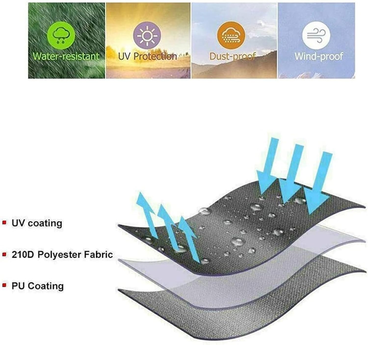 This 210D Oxford fabric cover provides reliable protection for your lawn mower or tractor against rain, dust, and UV rays. Ideal for outdoor storage.【Product Details】- **Material:** 210D Oxford fabric (PU coated)- **Colors:** Black, Gray, and more- **Approximate Size Options:**- 72" × 46" × 54" (183cm × 117cm × 137cm)- Additional sizes available- **Features:** Waterproof, UV protection, dustproof, windproof, storage bag included, lightweight- **Use For:** Lawn mowers, tractors, tillers, blowers, outdoor equipment storage【Note】- Dimensions may vary slightly due to manual measurement.- Colors may appear slightly different depending on monitor settings.- Not fully waterproof – heavy rain may cause moisture penetration.- Allow equipment to cool before covering.