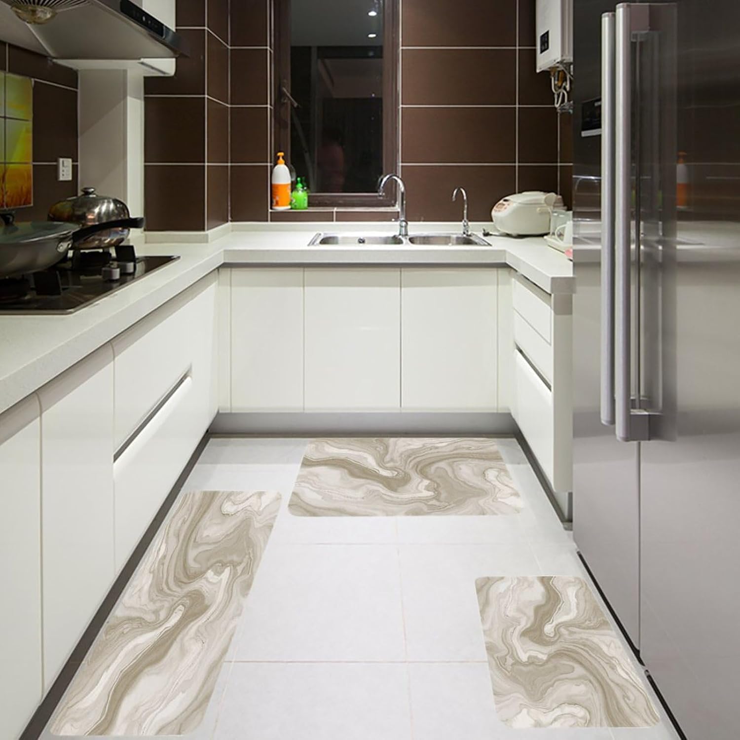 Discover the perfect blend of comfort,practicality,and style with our Anti-Loose Fiber Flannel Kitchen Set of Three Items.Meticulously crafted using Anti-Loose Fiber Flannel,these mats offer an exceptionally soft and cozy surface underfoot.The specialized fabric construction minimizes fiber shedding,ensuring the mats retain their plush quality over time.Engineered as effective Anti Fatigue Wavy Line Style Mats,the generous thickness provides genuine relief,making extended periods of standing while cooking or cleaning noticeably more comfortable.The set's comprehensive coverage–featuring a longer Cushioned Runner Rug for extended areas,a middle Comfort Kitchen Mat for central prep zones,and a shorter Floor Mat for in Front of Sink–ensures your key kitchen spaces are protected and cushioned.Their utility extends beyond the kitchen,serving well as reliable Thick Kitchen Floor Rugs in bathrooms,mudrooms,or covered outdoor areas.This set of Breathable Wavy Line Style Rugs is designed to be both practical and visually appealing.Choose from designs that evoke the cozy familiarity of a Farmhouse Mat or opt for the clean lines of Modern Kitchen Mats.The rich textures and vibrant patterns act as beautiful Home Decoration Rugs,adding a layer of warmth and personality to any space they grace.Whether you're aiming for a classic look with Vintage Rugs or a contemporary update,these mats seamlessly integrate into your decor,transforming functional areas into stylish and welcoming parts of your home.