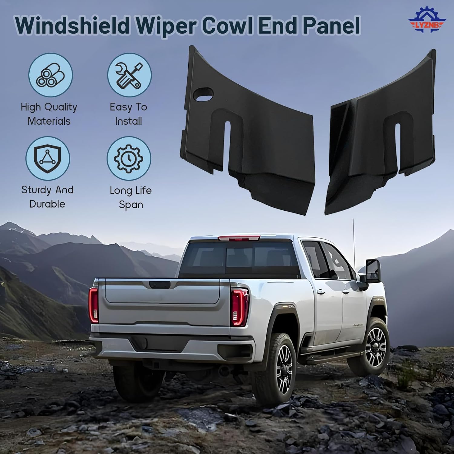 Material: PlasticColor: BlackWhy choose this item:Replace the end plate of the windshield wiper cover to prevent water leakage, abnormal noises and foreign objects from entering the engine compartment, ensuring the durability and quietness of your vehicle!Installation method:First, loosen the snap fastener, then remove the seat, align it with the slot, and press it in to lock it in place.Q&A:Q1: Can this Windshield Wiper Cowl End Panel perfectly fit for my GMC Sierra truck?A1: Windshield Wiper Cowl End Panel has been specially developed for the 2007-2013 of GMC Sierra 1500/2500HD/3500HD. Windshield Wiper Cowl End Panel comes in a complete set on both sides, and it exactly corresponds to the part numbers 15946003 (left) and 15946004 (right).Q2: Does the installation require any specializeds tools or techniques?A2: With the factory-designed snap fasteners, no tools are needed. Just align the position with your hands and press down to complete the installation. The replacement of both sides can be completed within 3 minutes, truly achieving DIY quick installation.Q3: Is the product material durable?A3: Windshield Wiper Cowl End Panel’s made of high-quality ABS engineering plastic. Windshield Wiper Cowl End Panel’s resistant to ultraviolet rays and color fading, can withstand high and low temperatures (-40℃ to 120℃), has good anti-aging properties, and will not deform or crack over a long period of use.Q4: What practical improvements have been achieved after the replacement?A4: Windshield Wiper Cowl End Panel effectively prevents debris such as rainwater, dust, and leaves from entering the engine compartment, protecting the wiper motor and the air intake of the air conditioner, reducing abnormal noises and wind noises, and enhancing the driving tranquility.Q5: Can Windshield Wiper Cowl End Panel protect the wiper system?A5: Yes, it can.Windshield Wiper Cowl End Panel can prevent debris from accumulating on components such as the wiper motor and linkage mechanism, reducing wear and malfunctions caused by impurities and extending the service lifes of the wiper system.Note:1.Please check the part number carefully.The product information is for reference only.2.If you are not sure about the item, please contact us before purchase to avoid unnecessary returns, thank you!