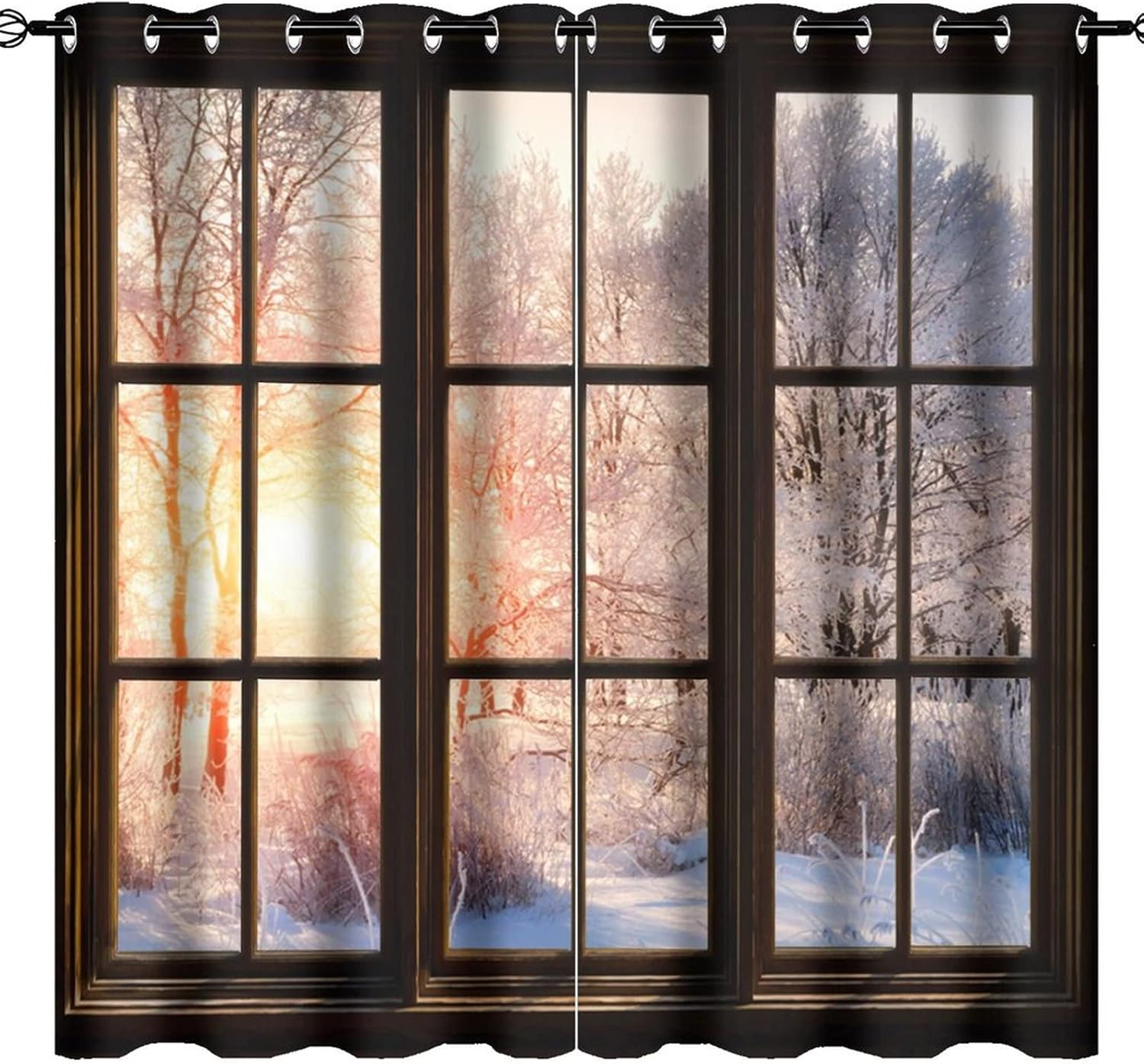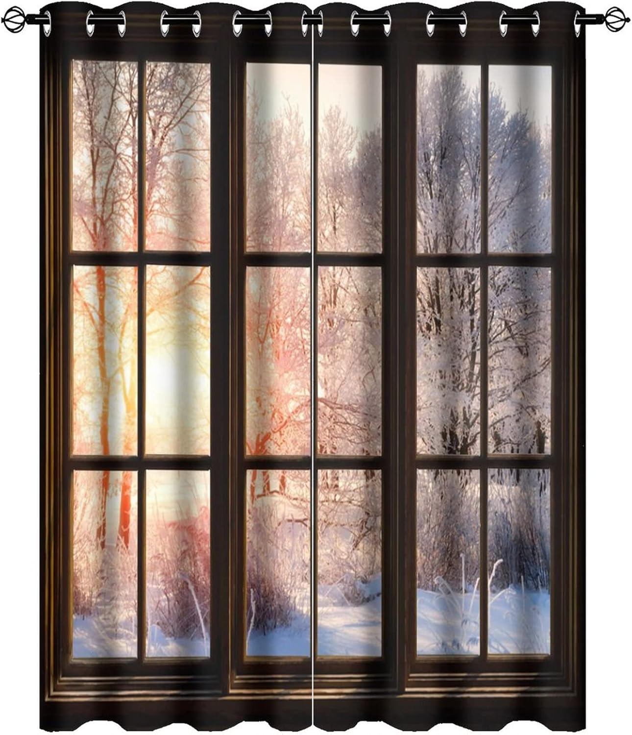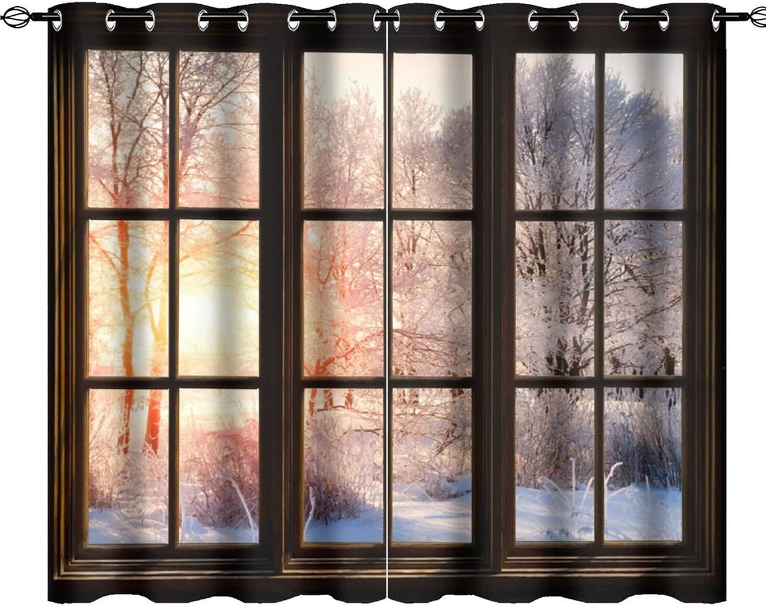 • ✔【Winter Forest Natural Scenery Grommet Blackout Curtain】The total size is: 55x63in.2 Panels, the size of each 2 Panels is: 27.5x63in .Natural Feeling. Breathable Fabric.