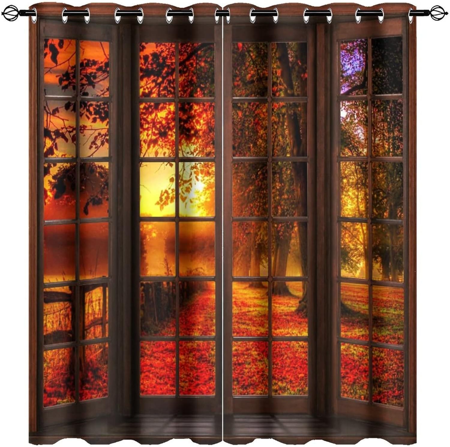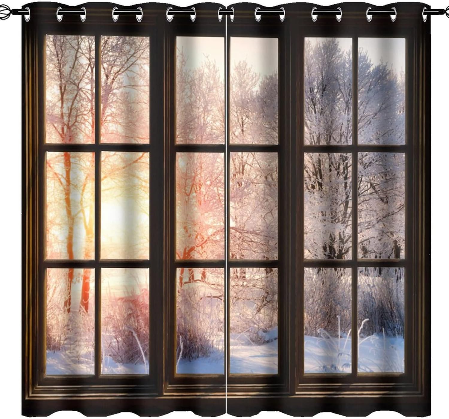Winter Forest Natural Scenery Room Darkening Blackout Window Curtains with Grommets,Beautiful Sunset Forest Snow Open Window Design Energy Efficient Window Treatment 2 Panels 63L x 27.5W