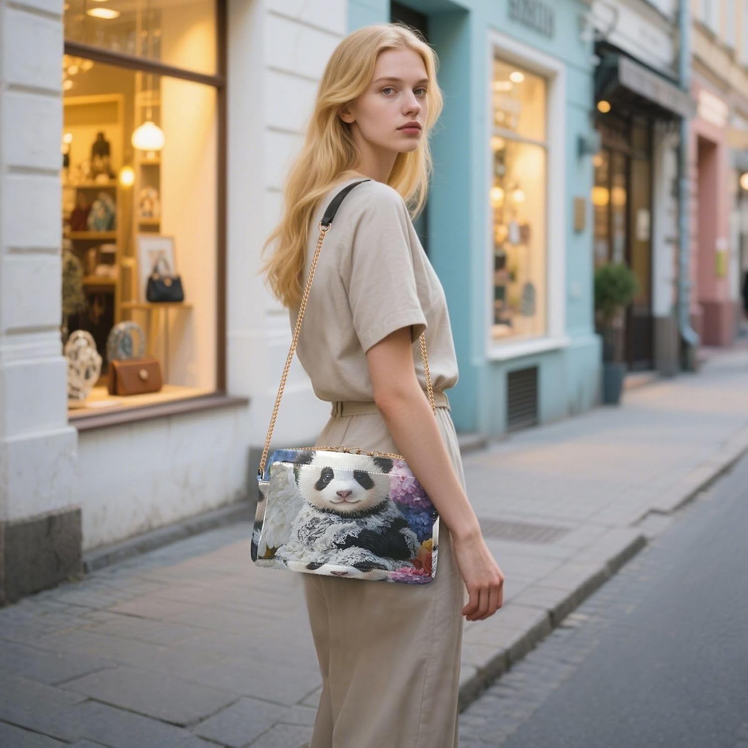 • Chain Strap: Elegant metal chain shoulder strap