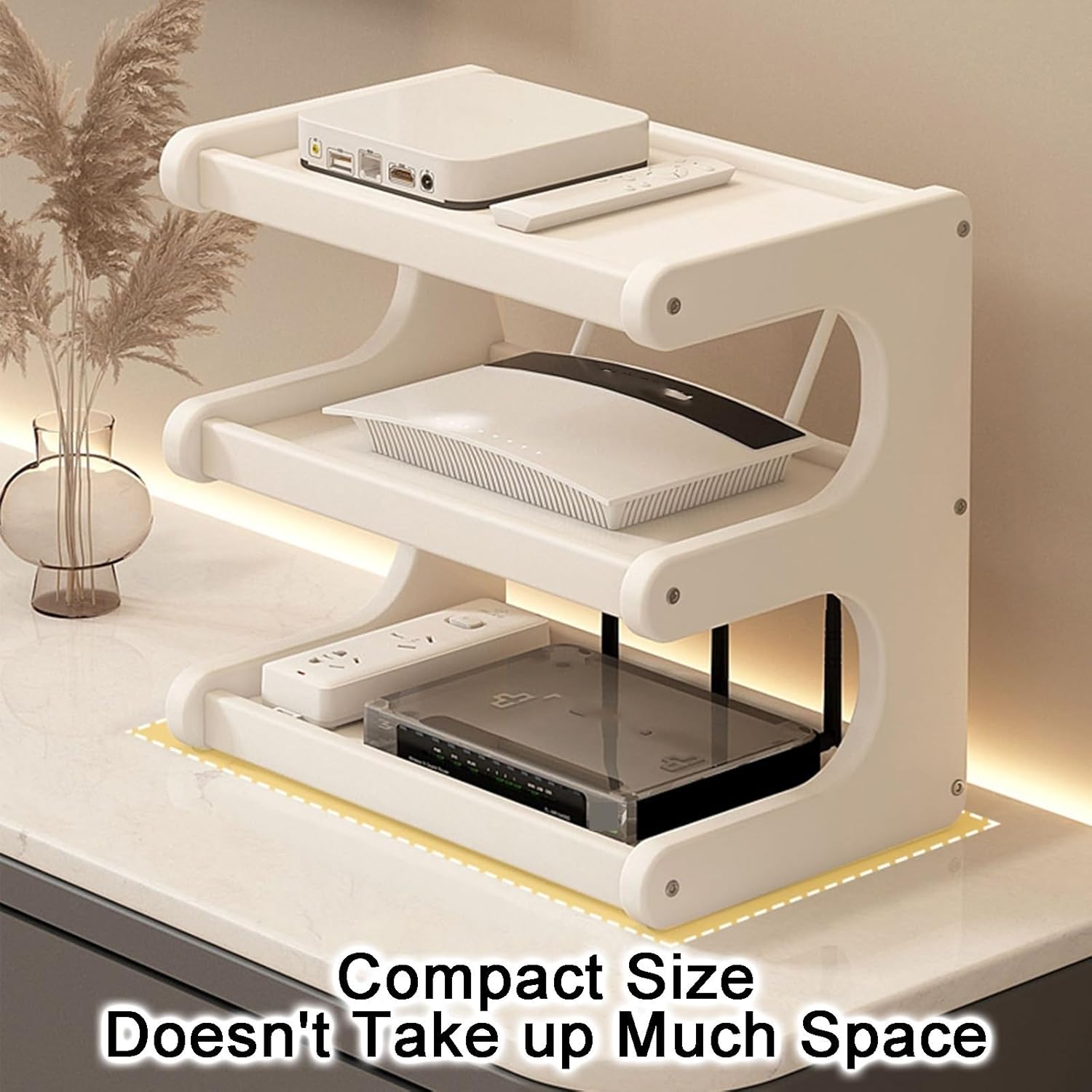 This wooden Wi-Fi router box hider is expertly crafted from durable wood, designed to withstand pressure and provide a stylish solution for managing your electronic devices. Its spacious interior can accommodate a variety of items including audiovisual equipment, game consoles, DVD players, Blu-ray players, and set-top boxes, ultimately optimizing your living space and reducing clutter. **Product Details:** - **Name:** Router Cabinet / Wi-Fi Router Storage Cabinet / Modem Hider - **Material:** Bamboo - **Number of Layers:** 3 - **Dimensions:** Length: 12 in / 19 in, Width: 7 in, Height: 14 in - **Mounting Required:** Yes - **Installation:** Desktop - **Features:** Three-tier storage, countertop placement, no signal obstruction, versatile storage options - **Ideal For:** Living rooms, bedrooms, offices, playrooms The thoughtful design ensures that your devices are not only organized but also remain easily accessible while maintaining optimal signal strength. Whether you are looking to enhance your home office setup or declutter your entertainment area, this router box hider is the perfect addition. **Package Includes:** - 1 x Wi-Fi router storage box - 1 x Mounting accessories Transform your space with this stylish and functional router cabinet that blends seamlessly into any decor while providing practical storage solutions.