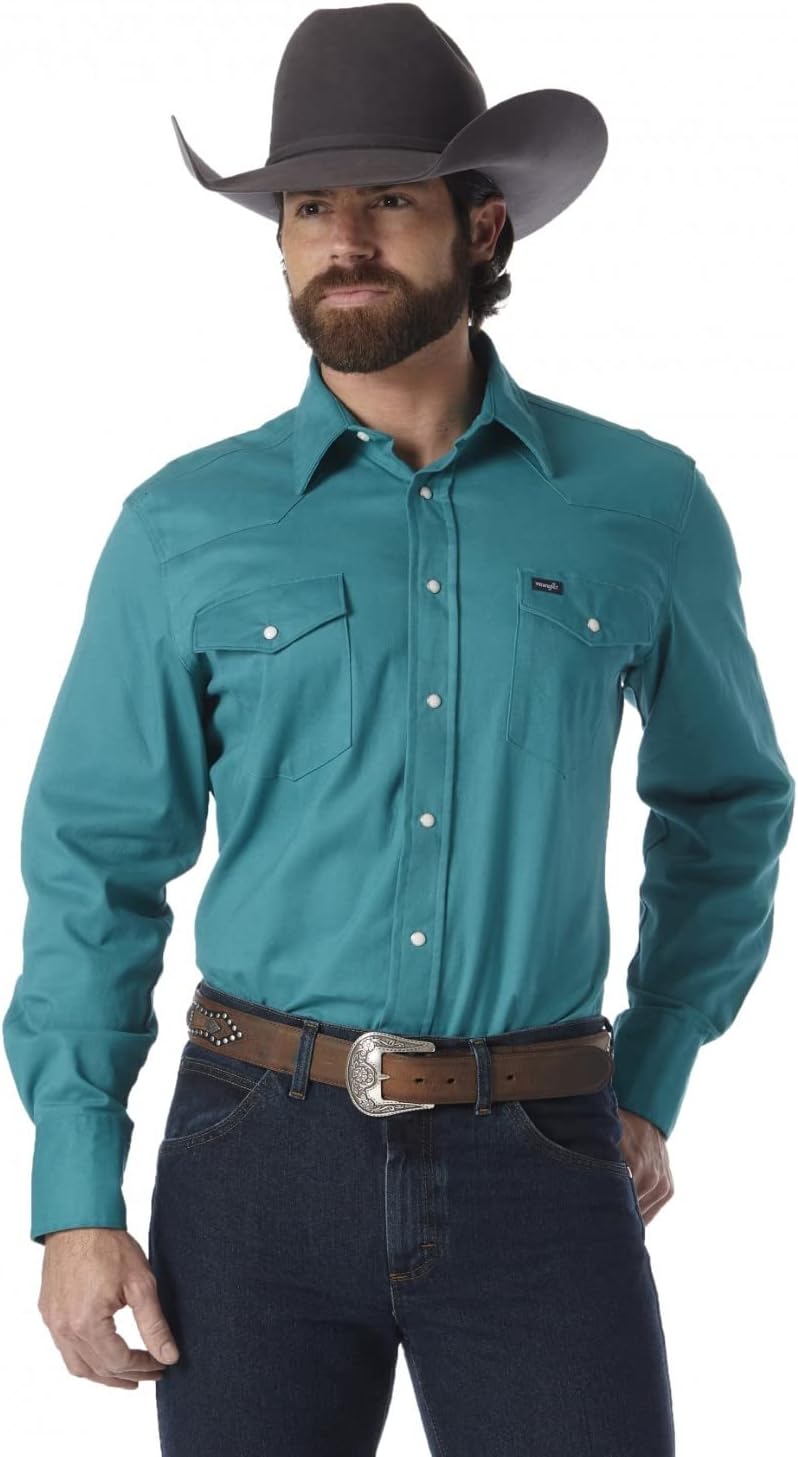 Since 1947, Wrangler has maintained a relentless commitment to quality apparel built to fit your life. Wrangler fills your closet with authentic snap shirts, tees, jackets and authentic western denim that keep you comfortable in true western style. Our shirts feature iconic details such as pearl snaps, pointed yokes, ‘W’ stitching on the pockets, and spread collars. Jeans come in 100% heavyweight denim or with a bit of stretch for extra comfort and feature a Wrangler patch, W stitching on pockets and classic 5 pocket styling. Crafted with care, our western line is made for men who start their day before the sun comes up and won’t stop working until the job is done. This is Wrangler, made for you.