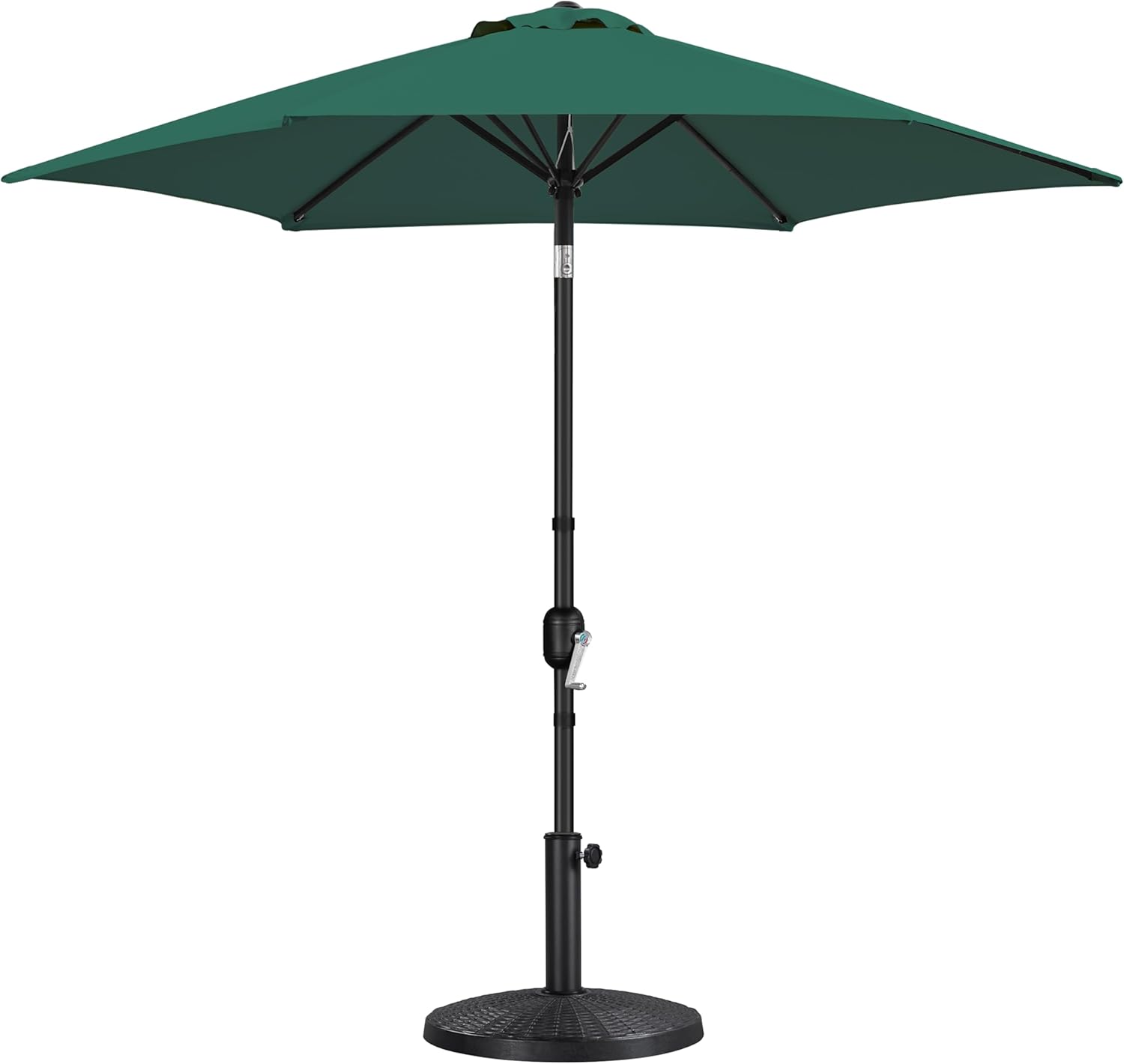 This set includes a 7.5 ft patio umbrella and a suited umbrella base. This 7.5ft hexagonal patio umbrella adds comfort and shade to your outdoor space. It's ideal for 2-4 people, offering ample coverage for family meals or relaxing moments. With an easy-to-use crank and a tiltable canopy for all-day sun protection, it's designed for convenience. The sturdy, powder-coated pole and durable fabric ensure it stands up to the elements, season after season. Our resin patio market base stand is wear-resistant and durable, capable of long-term usage. All-weather coating again expands the lifespan of this patio umbrella base. Wide compatibility upgrades the flexibility of the base, this patio umbrella base stands compatible with a 3.8 cm / 1.5″, 4.8 cm / 1.9″ diameter pole. Simple and universal style make this patio umbrella base stand suitable for all styles and colors, do not miss it!