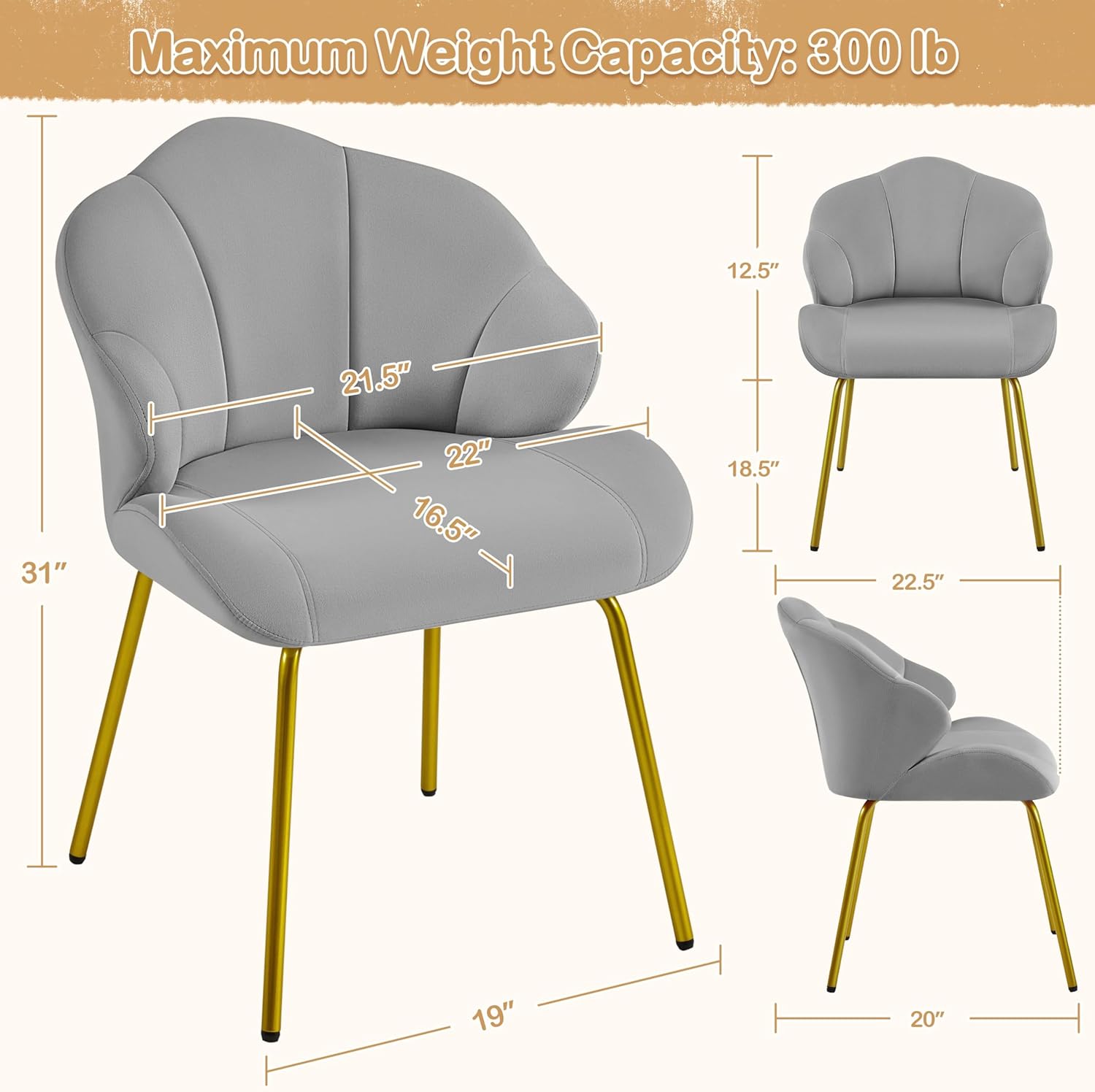 | Size | 22″ W × 22.5″ D × 31″ H |