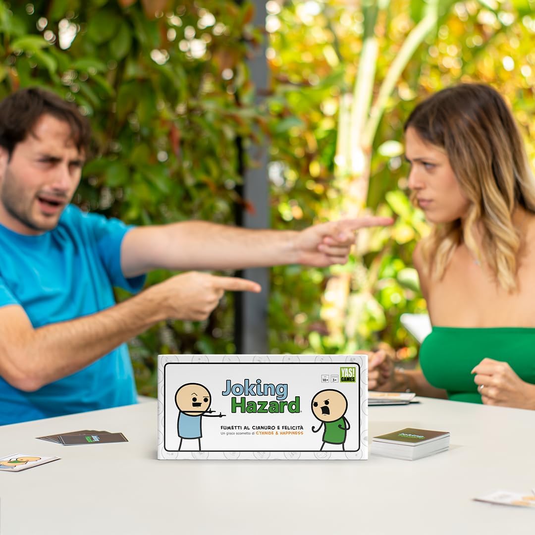 Inspired by Cyanide & Happiness's random vignette generator, Joking Hazard is a game in which you compete with friends and foes to complete a villainous three-panel comic, from a deck of cards with millions of possible combinations.