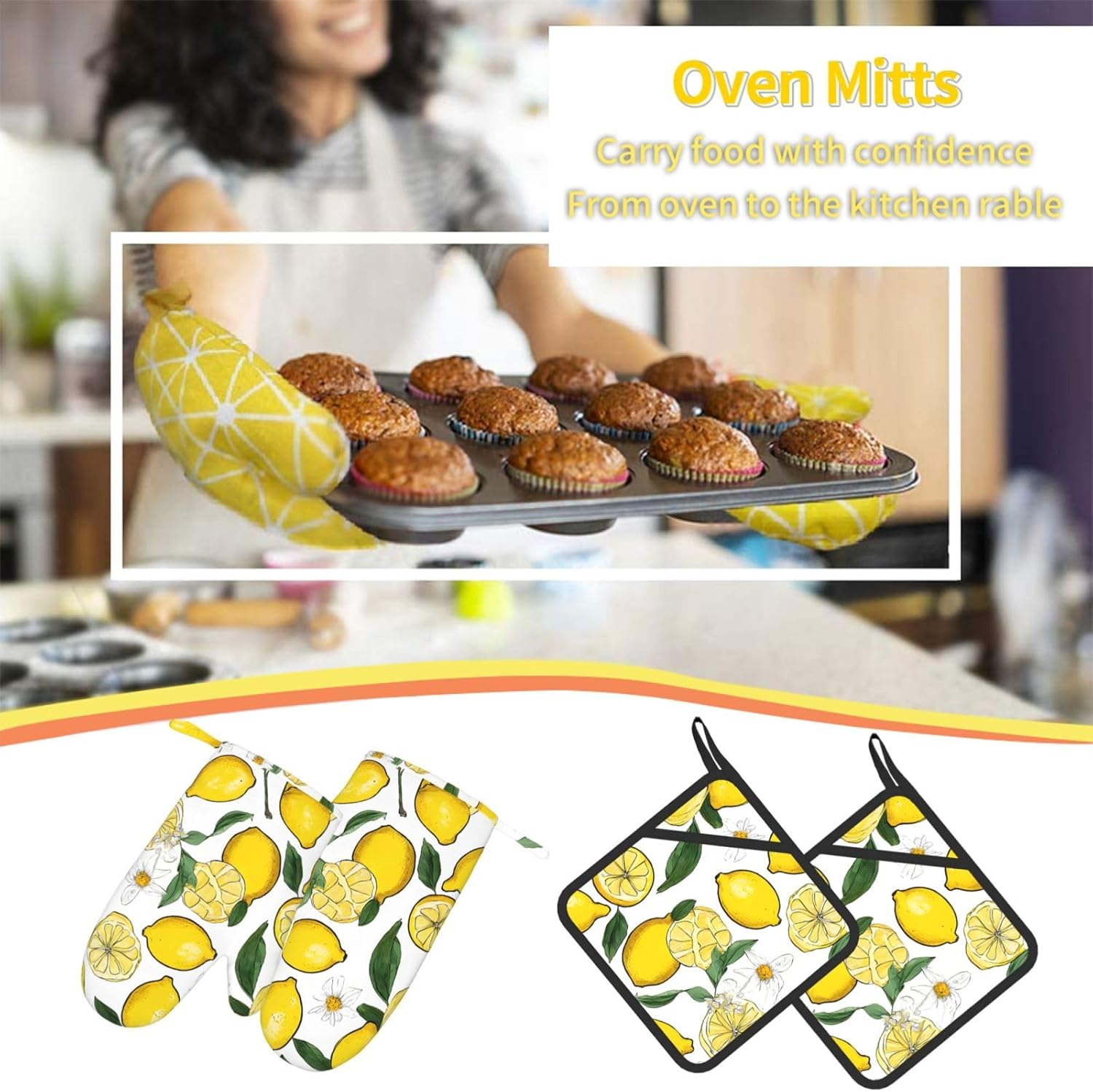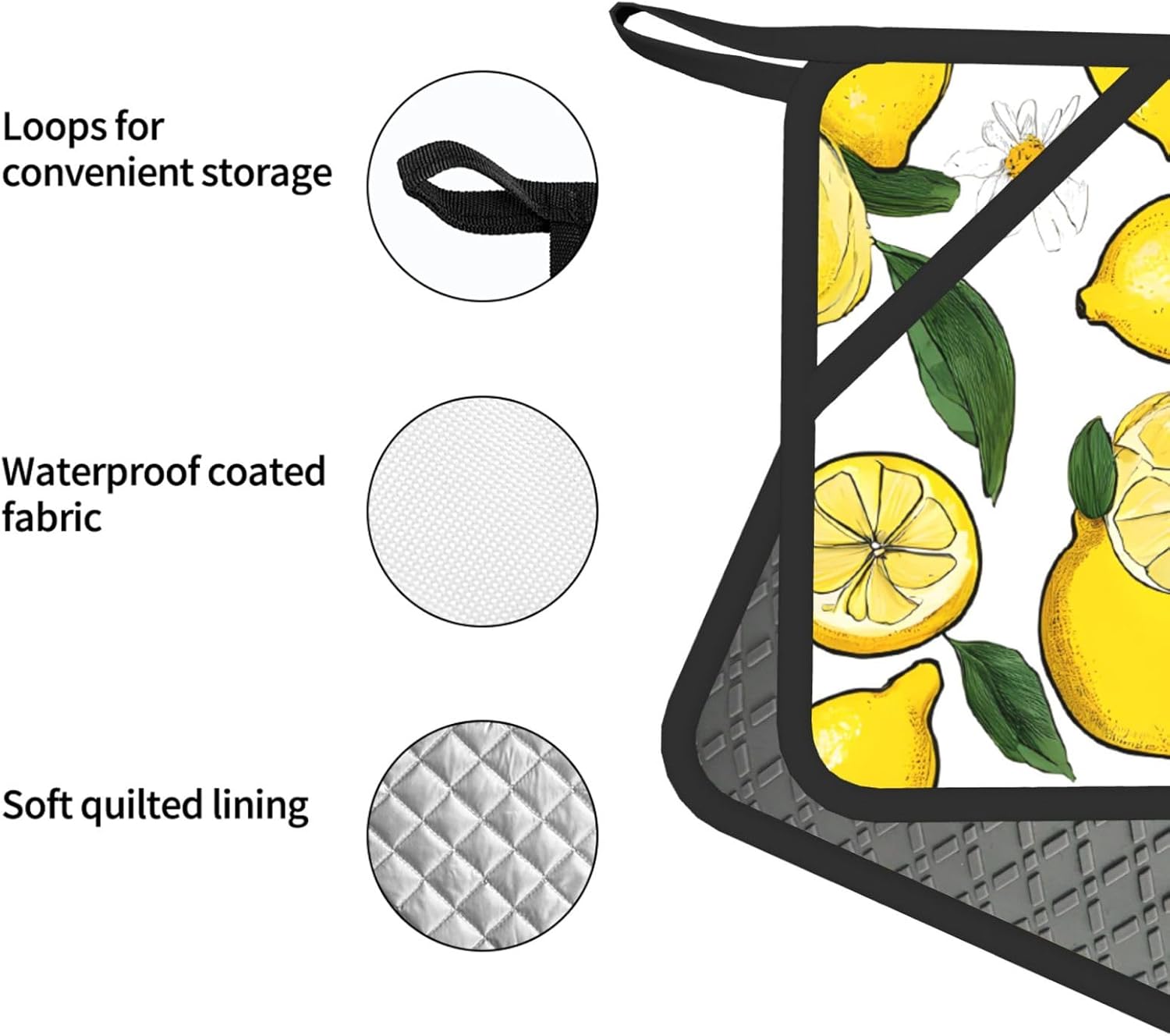 Yellow Lemons Oven Mitts and Pot Holders Set of 4 Heat Resistant Kitchen Gloves with Silicone Palm Hot Pads for Baking Cooking Grilling BBQ