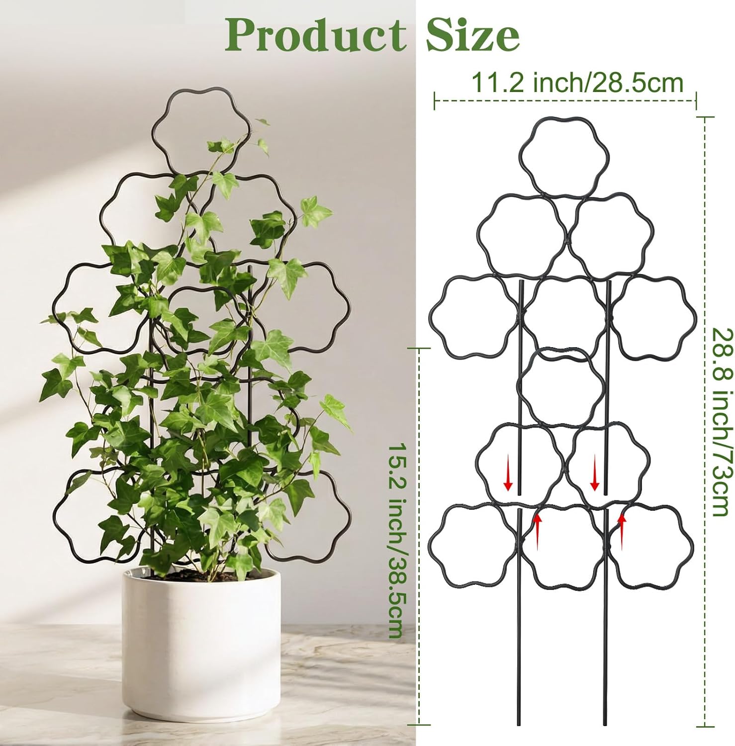 ZOUTOG presents a plant trellises that are not only functional but also decorative. Made from native iron, each trellis features unique patterns, is hand-welded, powder-coated, and sandblasted to resist rust. Their enhanced thickness offers stability and high quality. The robust metal frame can bear heavy loads, suitable for various climbing plants like jasmine and wisteria, promoting upward growth and sunlight absorption. They are easy to install and maintain, with detachable supports. Facilitating good airflow, they help plants grow healthily and add a natural charm to your space. Ideal for both beginners and experienced gardeners, and perfect for seasonal gardening, these trellises turn your plants into beautiful artworks, bringing nature indoors and enhancing any home or office.